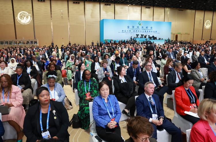 10月13日,嘉宾出席全球妇女峰会开幕式。同日,全球妇女峰会开幕式在北京国家会议中心举行。新华社记者 丁海涛 摄